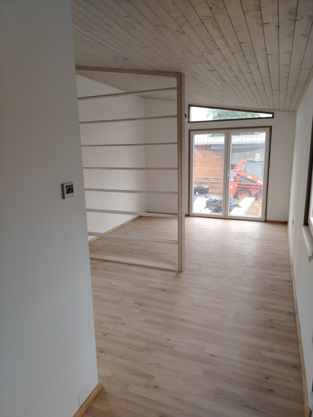 Padló: laminált parketta a lakótérben; a fürdőben vízálló burkolat